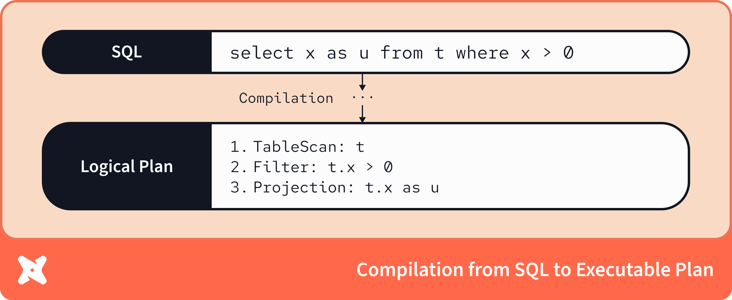 We are however, not all the way down the rabbit hole — a compiler-produced logical plan contains the full instructions for how to execute a piece of code, but doesn’t have any sense of how to actually execute these steps! There’s one more translation required for the rubber to fully meet the motherboard.